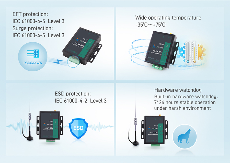 USR-G786 can quickly upload the data collected by various sensors in an
