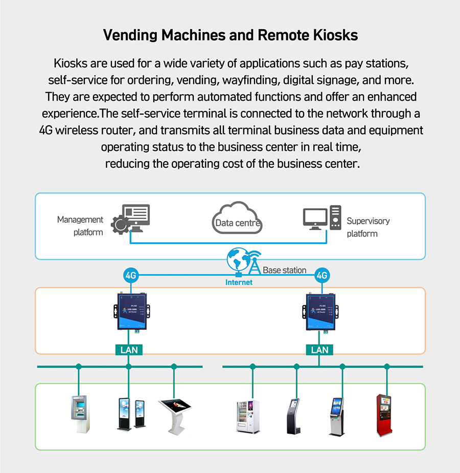 Convenience stores, parcel lockers, and other chain brands can reduce network maintenance costs for headquarters and branches using the IoT Router G805's unified management capabilities.