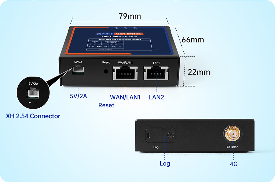 - Ethernet ports: 1 * WAN/LAN+1 * LAN